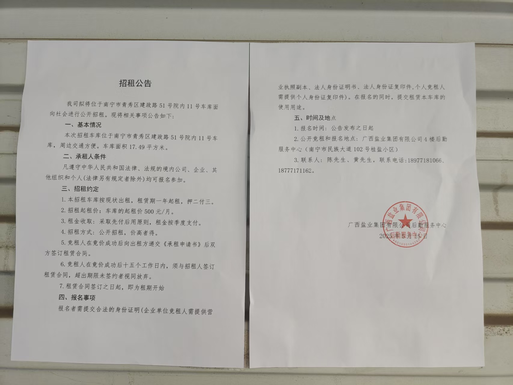 我司擬將位于南寧市青秀區(qū)建政路51號院內11號車庫面向社會進行公開招租?,F將相關事項公告如下: